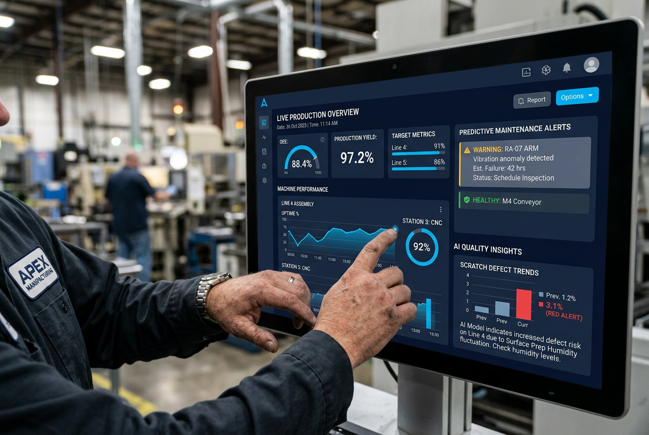 Smart Manufacturing is a core element of Industry 4.0, bringing together IoT, big data, cloud platforms, and system integration to transform how manufacturers operate. By leveraging real-time data, trends, and advanced analytics, manufacturers can increase throughput, minimize downtime, improve product quality, and make faster, more informed decisions. The key to success is identifying your unique operational challenges and applying the right smart manufacturing solutions—from connected sensors to predictive analytics—to maximize efficiency and competitiveness.